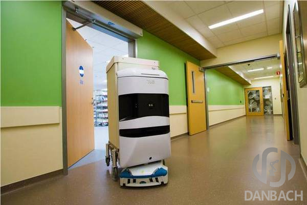 醫(yī)學(xué)的所有機(jī)器人看起來都像“L”型平板車,然后在平板上安裝不同類型的車廂。廚房車廂上有許多架子,上面擺放著食物托盤;藥房車廂上安裝有上鎖的抽屜,只有使用PIN碼和生物識別技術(shù)(比如護(hù)士的指紋)才能開鎖。這些機(jī)器人的載重量可達(dá)450公斤。當(dāng)這些機(jī)器人不忙著運(yùn)送物資時,它們可以停在小充電灣中補(bǔ)充能源。